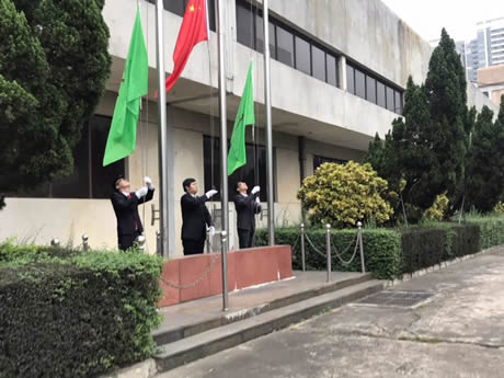 国旗与厂旗缓缓升起