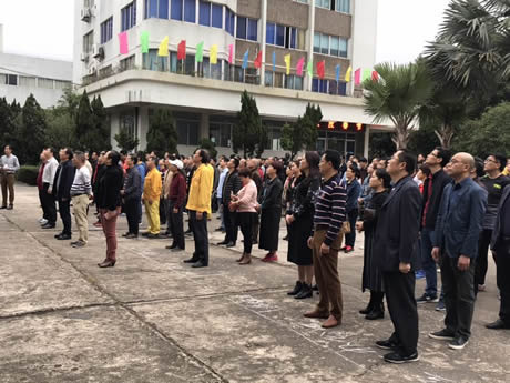南国的早春,绿意盎然,生机勃勃。在这万象更新,蓄势待发的春日里,员工们满脸春风,精神抖擞。8点零8分,升旗仪式正式开始,在庄严的国歌声中,国旗与厂旗在旗手们步调一致中冉冉升起。在行注目礼的瞬间,自豪感油然而生,心中默念祝愿祖国繁荣富强,企业兴旺发达。俗话说:一年之计在于春,好的开头是成功的一半。当然少不了领导的加油鼓劲,升旗礼毕,公司代董事长李云峰同志为我们发表开年贺词加油鼓劲,勉励我们齐心合力,团结互助,扬长避短,精益求精,共创美好明天。