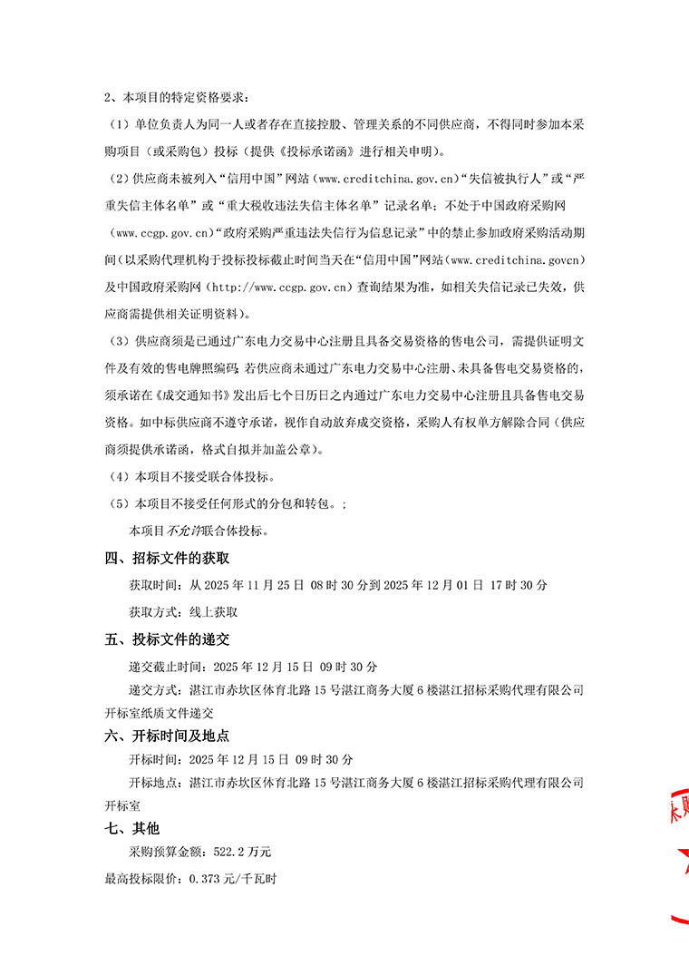 华人策略celue2026年电力市场购电项目公开招标(招标编号:ZJZCDL2025-QC-GZ124)