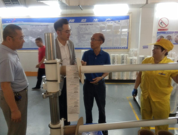 检查调研过程中,陆东旭详细询问了BOPP薄膜的生产工作环节和相关业务制度规范,并与员工进行深入交流。在听取制膜车间和分切车间的基本情况和总控室操作规范,观看了生产现场模拟演示后,陆东旭对各车间的工作给予充分肯定。