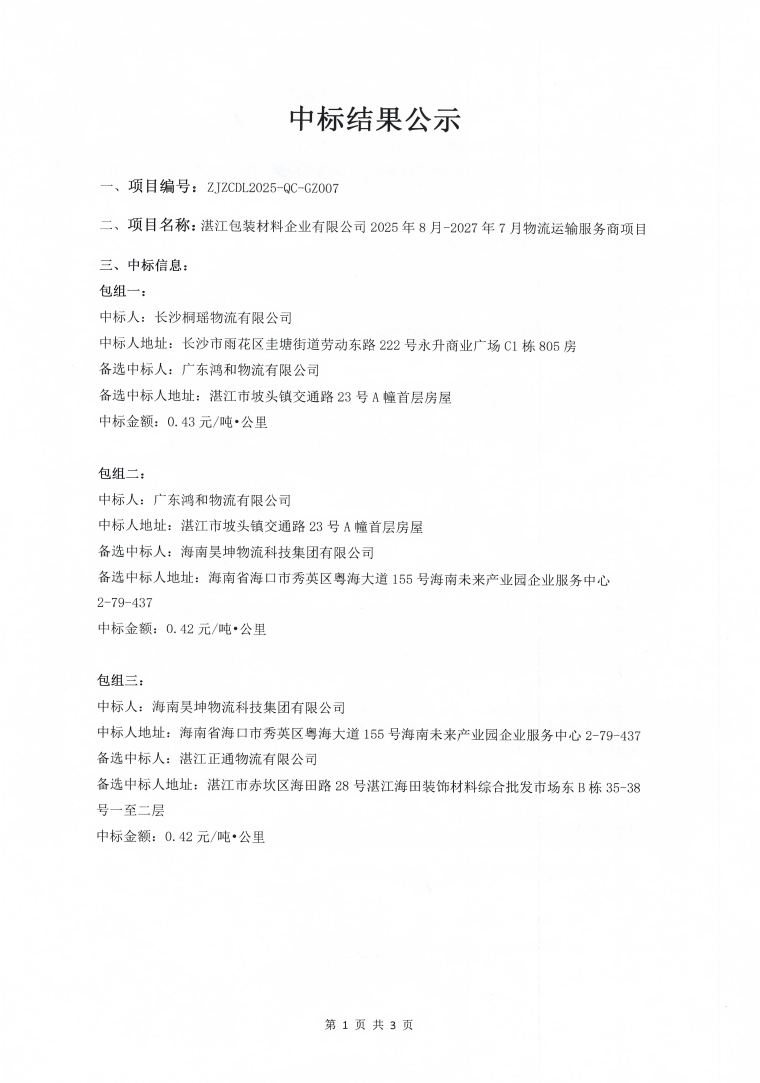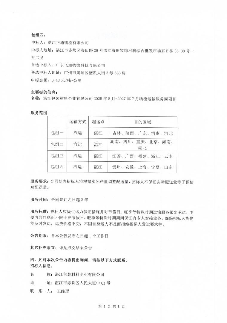 华人策略celue2025年8月-2027年7月物流运输服务商项目中标结果公示