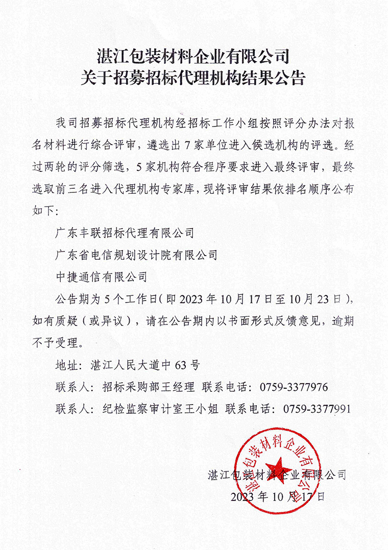 关于招募招标代理机构结果公告