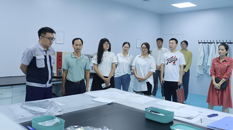 签约仪式后,泉庄街道党工委书记陈龙盛、人民社区党委书记潘青一行6人依次参观了我司生产车间、实验室、劳模工作室、产品展示大厅,并听取了详细的讲解。