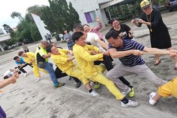 公司代董事长李云峰致运动会开幕词 八段锦老师向员工传授八段锦健身操