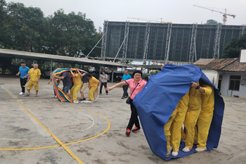 本次运动会共九个项目,包括拔河、风火轮、摸石过河、蛟龙取水、入樽、巨人脚步、不倒森林、运球比赛、六人足球赛等。公司分四个团队参加,分别是制膜车间、工务车间、分切车间和办公室。除了六人足球外,每个项目要求每个团队都是8个人(6男2女)参加。