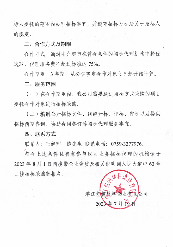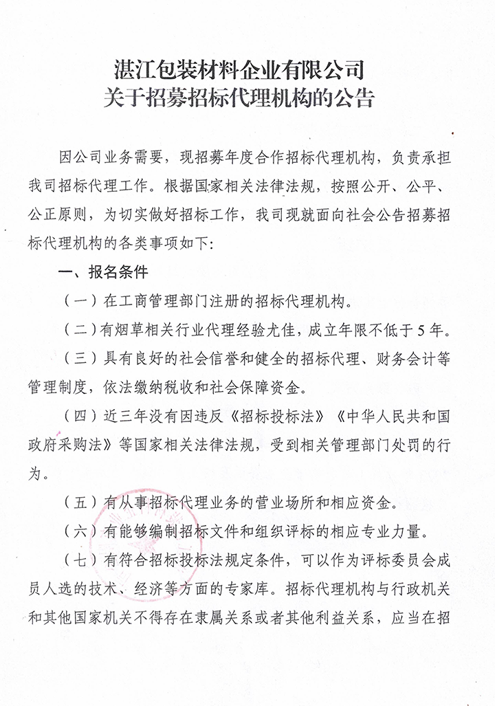 关于招募招标代理机构的公告